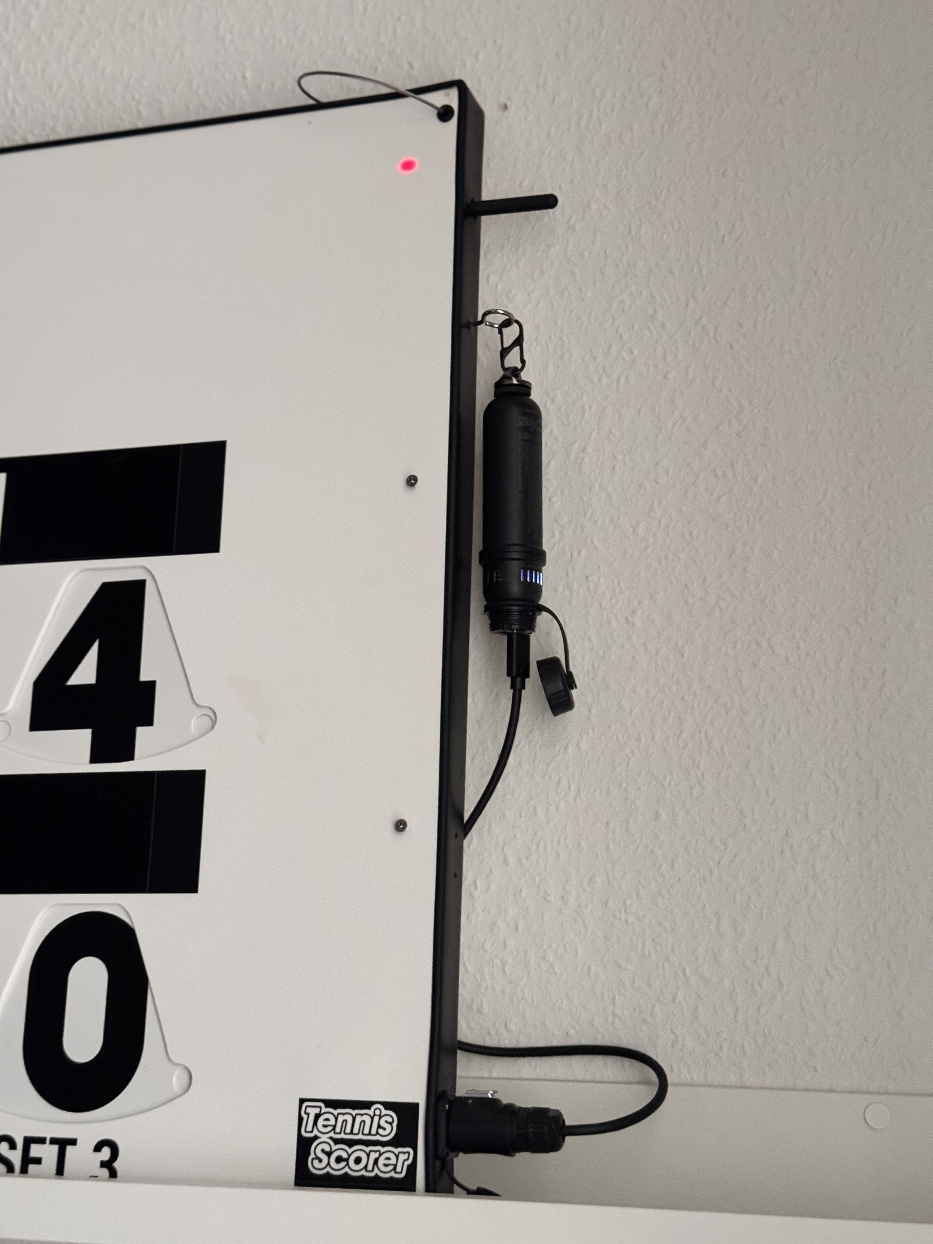 Für den Betrieb des Spielstandanzeigers wird eine Powerbank mit USB-C Anschluss empfohlen. So ist der Anzeiger unabhängig von Steckdosen und kann auch im Außenbereich flexibel aufgestellt werden.
